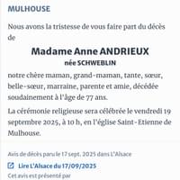 Anne, notre doyenne et membre du CA des Petites Cantines Mulhouse, est décédée très soudainement dans son sommeil.